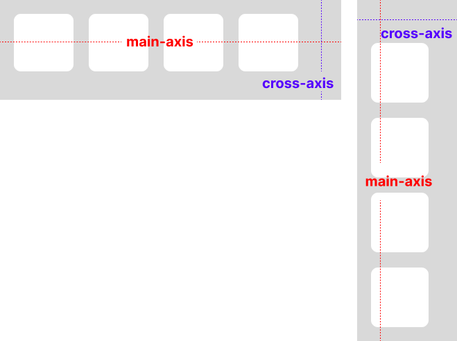 먼저 주축과 교차축에 대한 개념을 알고 있어야 한다. flex는 방향에 따라 주 축과 교차 축이 결정된다.